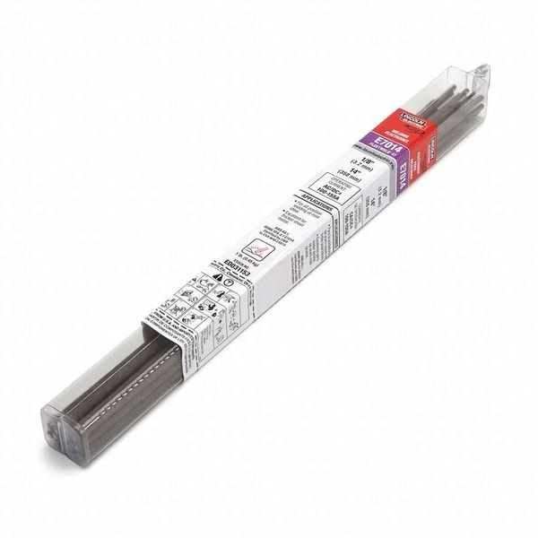 Stick Electrode, AWS Classification E7014, Material Carbon Steel, Process Stick Welding (SMAW), Overall Diameter 3/32 in, Overall Length 14 in, Tensile Strength (Minimum Required) 70 ksi, Tensile Strength (As Welded) 70 to 85 ksi, Yield Strength (Minimum Required) 58 ksi, Yield Strength (As Welded) 58 to 74 ksi, Series Fleetweld 47, Weight 5 lb, For Material Type Carbon Steel to Carbon Steel, Welding Current Designation AC, DCEN, DCEP
