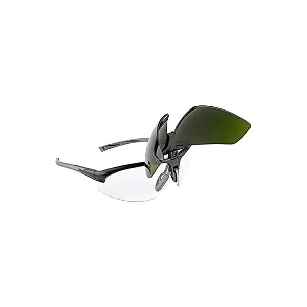 Black, Safety Glasses, IR5 Flip Lens, Brazing Glasses Help Protect Against Glare UV, The Shade 50 IR Flips Up To Provide Clear Safety Glasses Underneath For Quickly Inspecting Work Without Having To Remove Glasses, Comfortable Lightweight Frame For Everyday Use, Dark Lens Color Is 50 IR, Glasses Provide UVA, B, C Protection, Glasses Are 1 Size Fits All