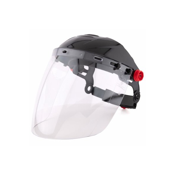 Lincoln Electric contemporary design face shield is extremely popular due to the light weight construction extra soft brow pad and contoured visor providing extra protection.
