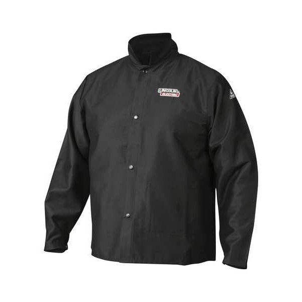 Welding Jacket, Cotton, 9 oz, 30 in Length, Button Closure, 1 Pockets, Black, M