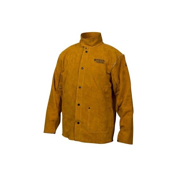 Extra Large, Leather, Welding Jacket, Features Heavy Duty Side Split Cowhide Leather Chest Sleeves, Provides Superior Protection For Stick Welding, Flame Retardant Cloth Back Keeps You Cool, Flip Collar Is Secured By Hook Loop As An Added Measure Of Spatter Protection