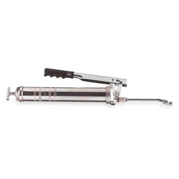 Manual Grease Gun, Grease Gun Loading Method Bulk, Cartridge, Filler Pump, Grease Gun Handle Style Lever, Nozzle Extension Type Rigid Pipe, Strokes per Oz. 33, Max. Operating Pressure 0.5714 psi, Cartridge Capacity 14 1/2 oz, Bulk Capacity 21 oz, Pipe Length 6 in, Silver, Tube Material Metal, Tether Style Standard Tool (Accessory Needed for Tethering), Variable Stroke / Full Stroke Variable Stroke, Not Applicable, Tool Length 25 1/4 in, Features Comfortable Ergonomic Grip, Includes Plated Barrel