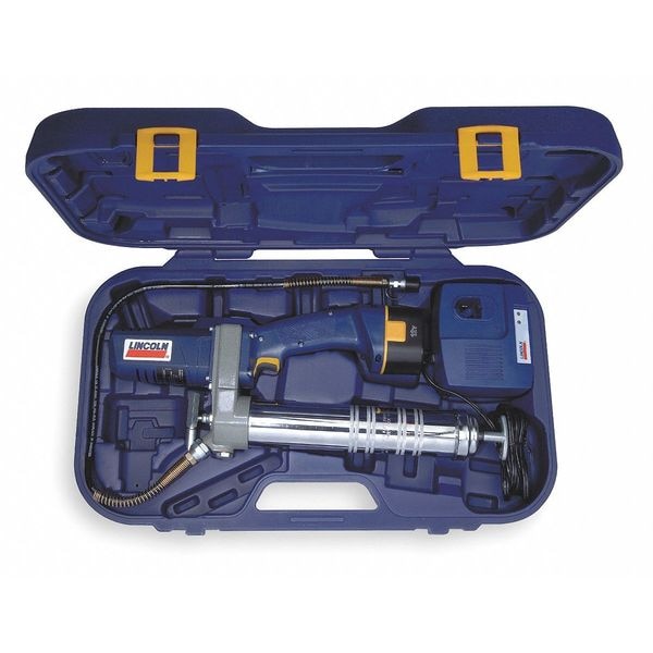 Cordless Grease Gun, Battery Included, 12 V, NiCad, Bulk, Cartridge, Suction, Pistol Grip, Nozzle Extension Type Flex Hose, Max. Operating Pressure 6,000 psi, Cartridge Capacity 14 1/2 oz, Bulk Capacity 16 oz, Tube Color Silver, Volume per Minute 3 fl oz, Battery Capacity 1.3 Ah, Number of Speeds 1, Includes Custom Carrying Case