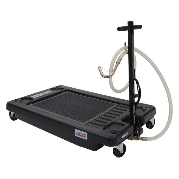 Low Profile Portable Oil Drain, Capacity 17 gal, Overall Height 7 3/4 in, Overall Length 60 in, Overall Width 28 in, Black, Hose Included Yes, Discharge Hose Length 6 ft