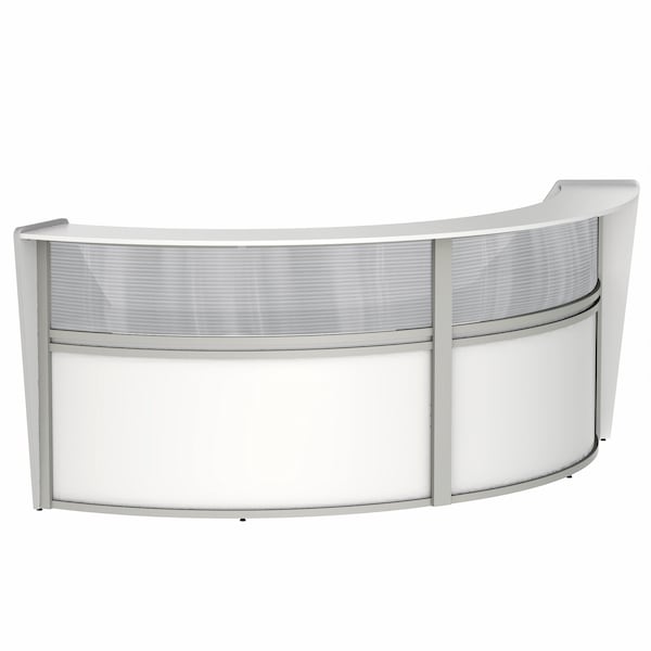 Curved Reception Desk 2 Units, Clear Panel, 124 inW x 49 inD, White