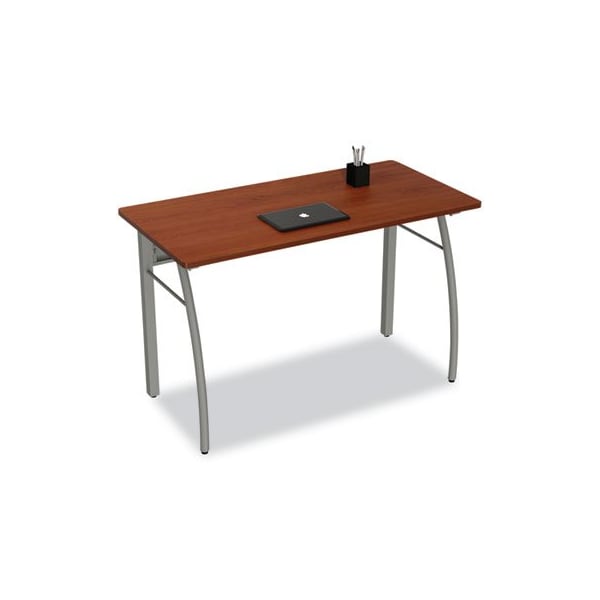 Scratch- and stain-resistant woodgrain laminate with durable edge and strong powder coated steel frame. Adjustable leveling glides for stability. Quick and easy assembly in minutes with no tools required. Configure multiple desks to perfectly fit your space. Includes metal modesty panels. Pedestals fit under desk. Series Name: Linea Italia Trento Line; Worksurface/Base Color: Cherry; Color Family: Cherry; Worksurface Shape: Rectangular.