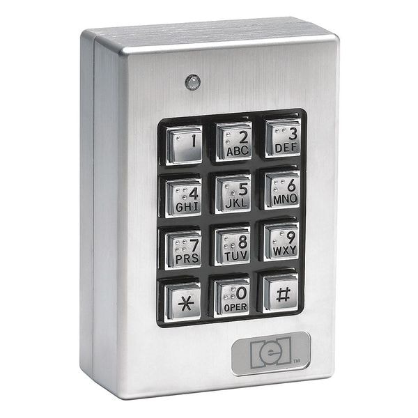 Electromagnetic Access Keypad, Type Indoor/Outdoor Surface Mount Weather Resistant Keypad, Material Metal, Finish Unfinished, Depth 1 5/9 in, Height 4 1/2 in, Width 3 in, Button Color Gray, Color Black/Gray, Input Voltage 12 to 24V AC/DC, Output 4 SPDT Relays, Amps AC 5A, Form C @ 24V DC, Operating Temp. 20 Degrees to 130 Degrees F, Event Audit Trail No, Max. User Codes 120, Keypad 12 Button, Cylinder No, For Use With Stand Alone, Includes (4) Programmable Timed Relays