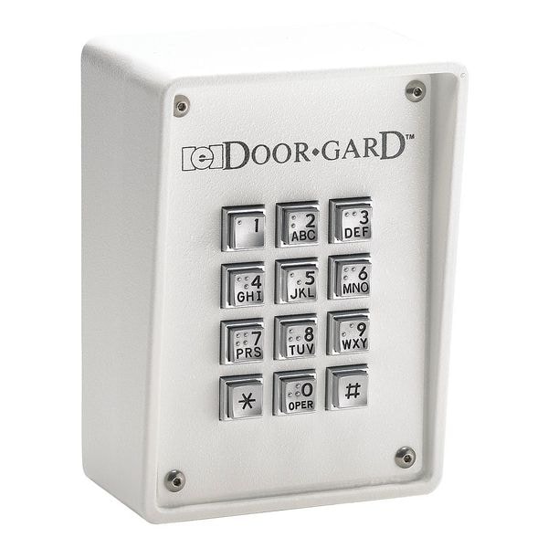Electromagnetic Access Keypad, Type Indoor/Outdoor Surface Mount Ruggedized Keypad, Material Die Cast Aluminum, Finish Painted, Depth 2 1/2 in, Height 5 1/4 in, Width 3 3/4 in, Button Color Gray, Color Gray, Input Voltage 12 to 24V AC/DC, Output 4 SPDT Relays, Amps AC 5A, Form C @ 24V DC, Operating Temp. 20 Degrees to 130 Degrees F, Event Audit Trail No, Max. User Codes 120, Keypad 12 Button, Cylinder No, For Use With Stand Alone, Includes (4) Programmable Timed Relays