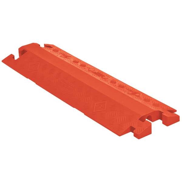 Cable Protector, Number of Channels 1, Cable Feed Style Lay Under, Connection Style T-Shaped, Channel Height 1 1/4 in, Channel Width 1 1/4 in, Load Capacity 17,000 lb/Axle, Material Polyurethane, Style Drop Over, Color Orange, For Use With Cables, Hose Lines, Max. Cable Dia. 1 1/4 in, Height 1 5/8 in, Length 38 1/4 in, Width 11 1/2 in, ADA Compliant No, Texture Serrated