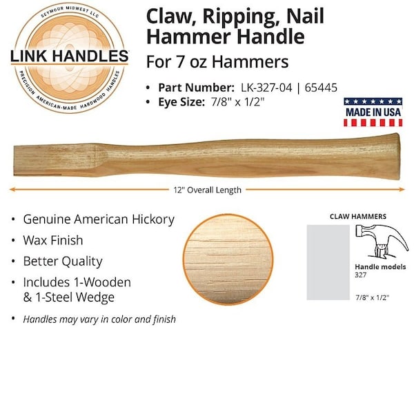 65447 Hatchet Handle, 12 in L, Wood, For 7 oz Hammers