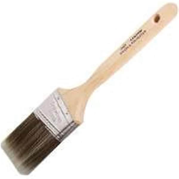 For all paints and stains. Natural wood handle stainless steel ferrule chiseled trim. 100-percent solid round tapered filaments. Features Professional grade Nylon/polyester bristle blend Width - 2.5 in. Dimension - 12.42 x 6.48 x 2.23 in. Item Weight - .34 lbs.