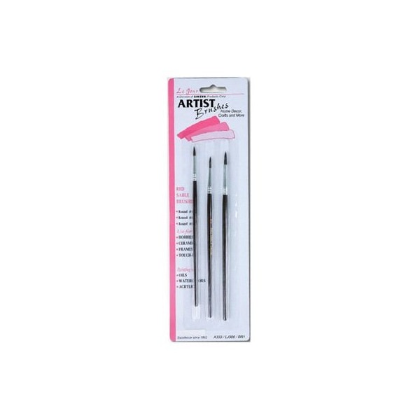 Le Jour, 3 Piece, Round, Red Sable, Artist Brush Set, Contains 1 Each 1, 3, 5 Round Brushes, Wood Handles, Carded