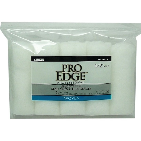 Paint Roller Cover, 1/2 in Thick Nap, 4 in L, Woven Fabric Cover, White