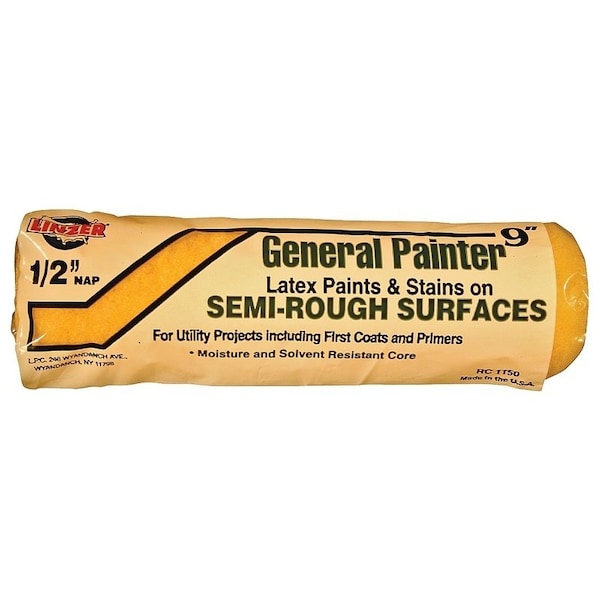 Paint Roller Cover, 1/2 in Thick Nap, 9 in L