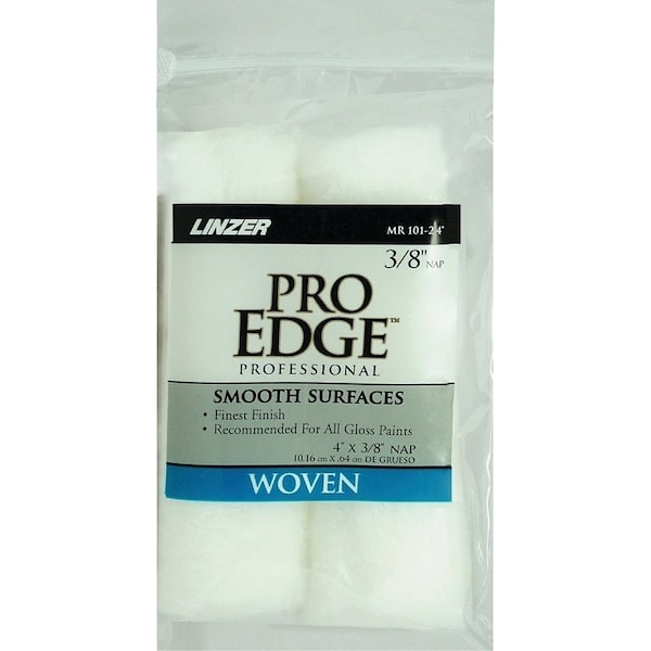 Paint Roller Cover, 3/8 in Thick Nap, 4 in L, Woven Fabric Cover, White