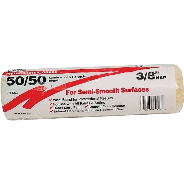 Paint Roller Cover, 3/8 in Thick Nap, 9 in L, Lambs Wool/Polyester Cover