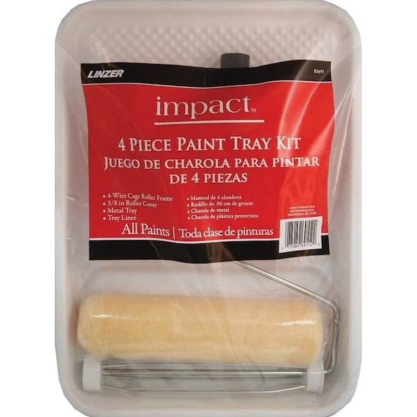 Includes 4-wire cage roller frame, 3/8 ft nap roller cover, metal tray and tray liner.