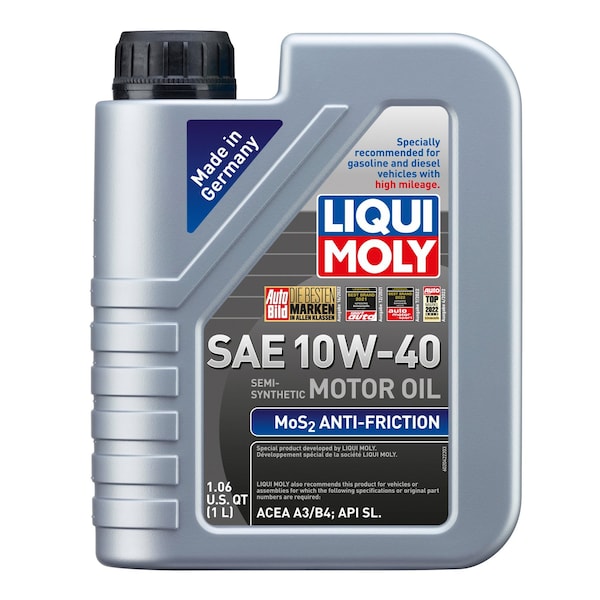 Semi-synthetic LIQUI MOLY specialty oil with an additive package containing Molybdenum Disulfide (MoS2). The unique formulation adds a high pressure and temperature resistant lubricating layer to all friction surfaces for added wear protection and safety reserves. Reduced friction will contribute to lower oil temperatures, oil consumption and stable oil pressure. Particularly suited for older generation air- or water-cooled gasoline solid lifter engines, with or without turbochargers. The MoS2 formulation dictates the oils gray color.