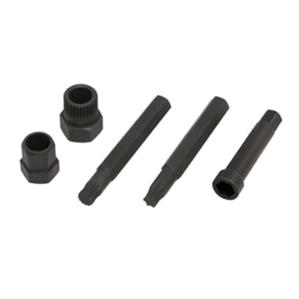 The alternator decoupler pulley tool kit includes all of the tools required for removal and installation of ADP one way and overriding/freewheeling.This handy tool kit includes five tools designed for North American vehicles.-Dimension - 4.2 x 7.2 x 1.5 in.-Quantity - 5.