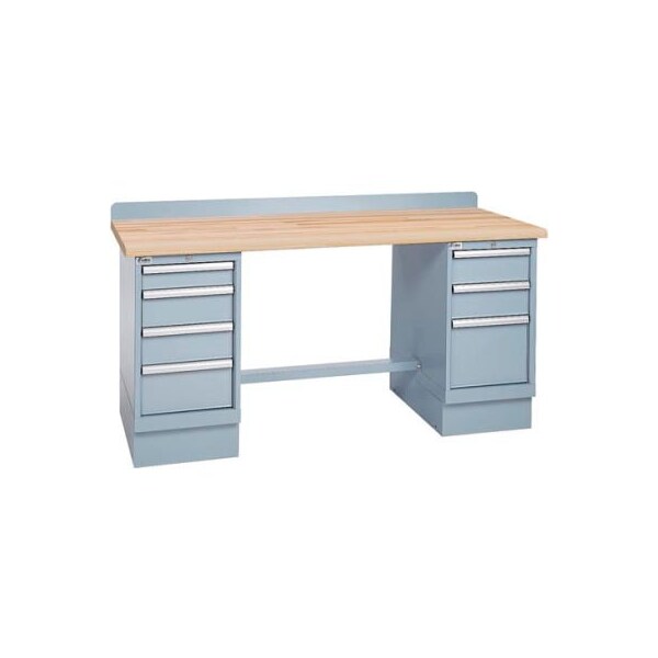 Durable, secure technical workstation provides the utmost in versatility, aesthetically pleasing design and productivity. typical applications include test, service, repair and quality. Features 35-1/4" work surface height. Includes 2 drawer cabinet pedestals with 7 drawers: (1) 3" (4) 5" (1) 7" (1) 11" file drawer, and 32 drawer compartments. Drawers have 150 lb. Drawer weight capacity. Includes back stop and stringer, 2 individual removable core locks and 2 pairs of keys. Assembly required.
