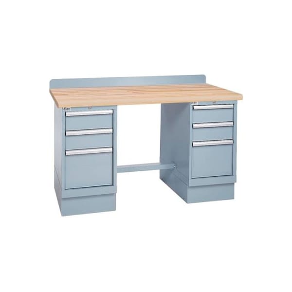 Technical Workbench w/3 Drawer Cabinets, Butcher Block Top - Gray