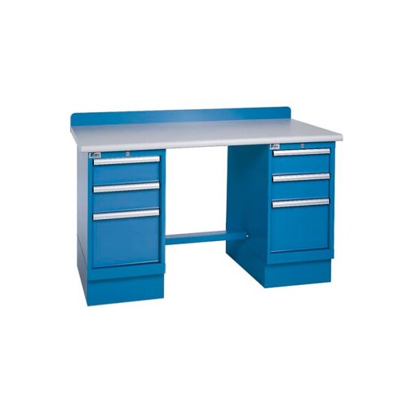 Technical Workbench w/3 Drawer Cabinets, Plastic Laminate Top - Blue