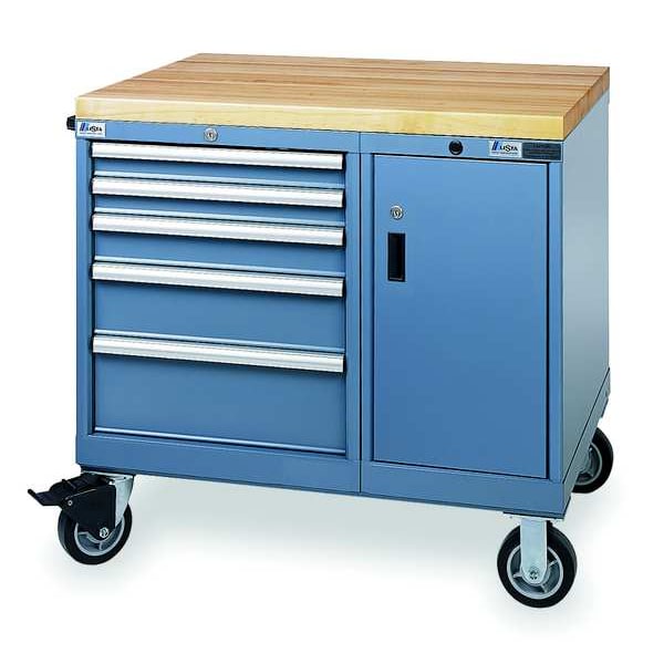 Modular Drawer Cabinet, Base Type Casters, Adjustable Dividers Yes, Cabinet Color Classic Blue, Cabinet Storage Components Drawers, Drawer Height 2 in, 3 in, 5 in, 7 in, Includes Dividers Yes, Number of Compartments per Drawer (1) 10, (1) 16, (1) 18, (1) 4, (1) 9, Number of Dividers 5, Number of Drawers 5, Overall Depth 28 1/2 in, Overall Height 37 1/4 in, Overall Width 39 in, Mobility Mobile, Cabinet Finish Powder Coated, Cabinet Material Steel, Caster Type (2) Swivel, (2) Swivel with Brakes