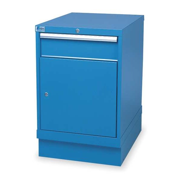 Modular Drawer Cabinet, Base Type Frame, Adjustable Dividers Yes, Cabinet Color Bright Blue, Cabinet Storage Components Drawers, Drawer Height 5 in, Includes Dividers Yes, Number of Compartments per Drawer (1) 4, Number of Drawers 1, Overall Depth 28 1/2 in, Overall Height 33 1/2 in, Overall Width 22 1/4 in, Lock Type Keyed, Method of Construction Welded, Mobility Stationary, Number of Compartments 4, Cabinet Finish Powder Coated, Cabinet Material Steel, Drawer Access Single, Drawer Depth 24 in