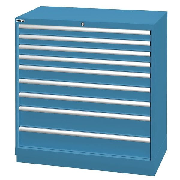 Modular Drawer Cabinet, Base Type Frame, Adjustable Dividers Yes, Cabinet Color Classic Blue, Cabinet Storage Components Drawers, Drawer Height 2 in, 3 in, 5 in, Includes Dividers Yes, Number of Compartments per Drawer (2) 12, (2) 18, (2) 6, (3) 15, Number of Drawers 9, Overall Depth 22 1/2 in, Overall Height 41 3/4 in, Overall Width 40 1/4 in, Method of Construction Welded, Mobility Stationary, Number of Compartments 134, Cabinet Finish Powder Coated, Cabinet Material Steel