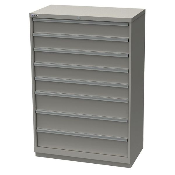 Modular Drawer Cabinet, Base Type Frame, Adjustable Dividers Yes, Cabinet Color Gray, Cabinet Storage Components Drawers, Drawer Height 5 in, 7 in, Includes Dividers Yes, Number of Compartments per Drawer (3) 12, (5) 18, Number of Drawers 8, Overall Depth 22 1/2 in, Overall Height 57 1/8 in, Overall Width 40 1/4 in, Method of Construction Welded, Mobility Stationary, Number of Compartments 78, Cabinet Finish Powder Coated, Cabinet Material Steel, Drawer Access Single, Drawer Depth 18 in