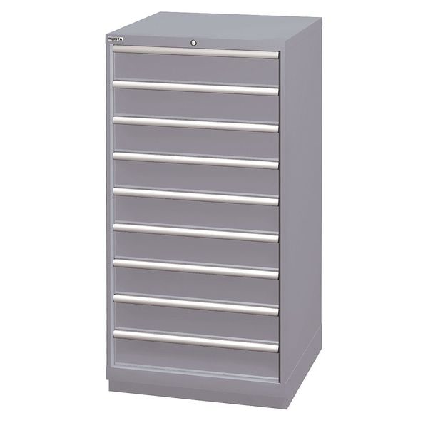 Modular Drawer Cabinet, Base Type Frame, Adjustable Dividers Yes, Cabinet Color Gray, Cabinet Storage Components Drawers, Drawer Height 5 in, Includes Dividers Yes, Number of Compartments per Drawer (4) 15, (5) 12, Number of Drawers 9, Overall Depth 28 1/2 in, Overall Height 57 1/8 in, Overall Width 28 1/4 in, Method of Construction Welded, Mobility Stationary, Number of Compartments 124, Cabinet Finish Powder Coated, Cabinet Material Steel, Drawer Access Single, Drawer Depth 24 in