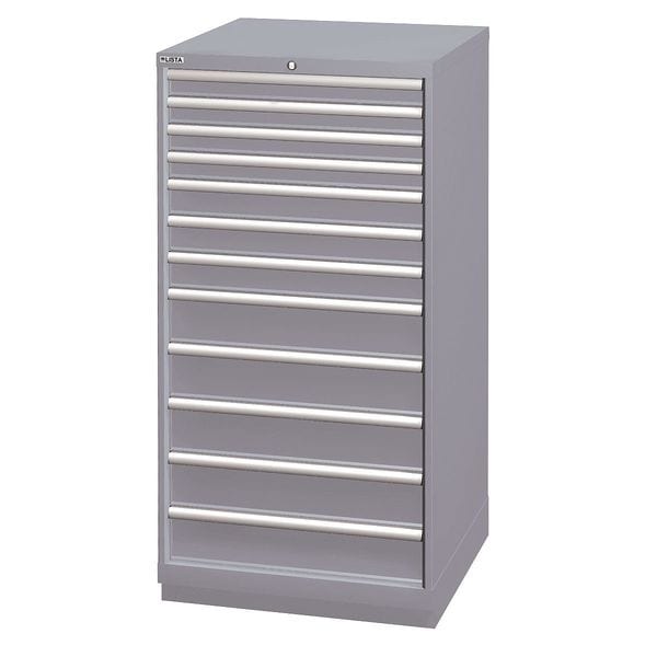 Modular Drawer Cabinet, Base Type Frame, Adjustable Dividers Yes, Cabinet Color Gray, Cabinet Storage Components Drawers, Drawer Height 2 in, 3 in, 5 in, Includes Dividers Yes, Number of Compartments per Drawer (3) 15, (4) 18, (5) 12, Number of Drawers 12, Overall Depth 28 1/2 in, Overall Height 57 1/8 in, Overall Width 28 1/4 in, Method of Construction Welded, Mobility Stationary, Number of Compartments 210, Cabinet Finish Powder Coated, Cabinet Material Steel, Drawer Access Single