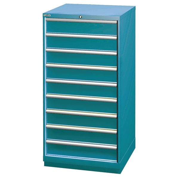 Modular Drawer Cabinet, Base Type Frame, Adjustable Dividers Yes, Cabinet Color Classic Blue, Cabinet Storage Components Drawers, Drawer Height 5 in, Includes Dividers Yes, Number of Compartments per Drawer (4) 15, (5) 12, Number of Drawers 9, Overall Depth 28 1/2 in, Overall Height 57 1/8 in, Overall Width 28 1/4 in, Method of Construction Welded, Mobility Stationary, Number of Compartments 124, Cabinet Finish Powder Coated, Cabinet Material Steel, Drawer Access Single, Drawer Depth 24 in