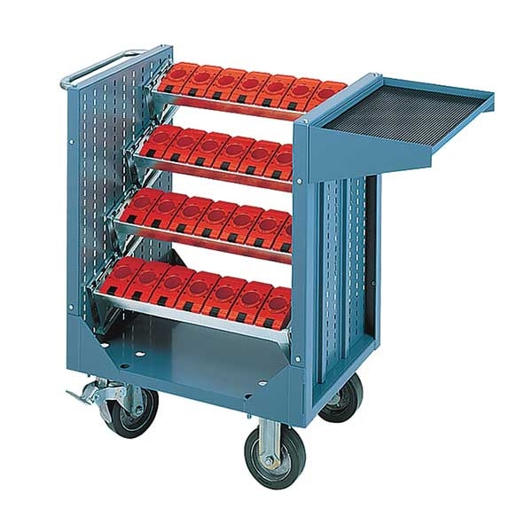 Tool Transporter, 40 Taper, Load Capacity 2400 Lb., Steel Construction, Painted Finish, Bright Blue, Overall Length 39 In., Overall Width 20 In., Overall Height 36 1/2 In., Caster Type Rubber, Caster Size 6x2 In., Includes 4 Tool Holder Trays, 4 Pairs of Mounting Brackets