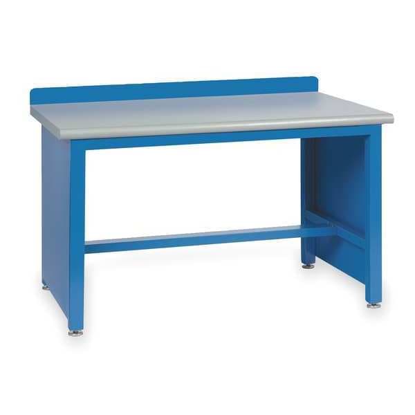 Workbench, Height Adjustability Fixed Height, Top Material Laminate, Assembly Fully Assembled, Color Blue, Frame Material Steel, Leg Type Panel Leg, Maximum Adjustable Height Not Applicable, Minimum Adjustable Height Not Applicable, Non-Metal Top Thickness 1 9/16 in, Number of Cabinets 0, Number of Drawers 0, Included Components Back Stop, Stringer, Number of Outlets 0, Number of Shelves 0, Overall Depth 30 in, Overall Fixed Height 35 1/4 in, Overall Load Capacity 1,000 lb, Overall Width 72 in