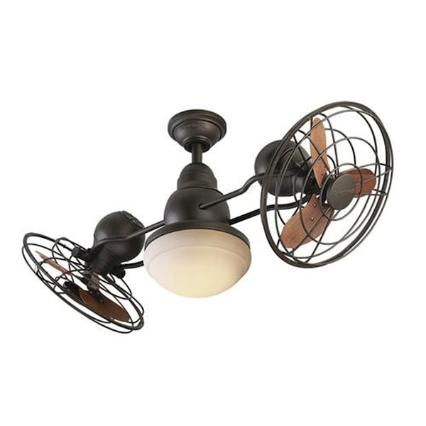 Litex Industries - JP13EB6CRS Fielder 41" Double Header ceiling fan rated for DAMP Locations - This striking double headed fan makes a bold statement for any indoor or outdoor location. This fan features 6 aluminum walnut blades with two 13" oscillating caged guards and fan rotates 360°, and includes a remote control for year round comfort and convenience. The high performance motor delivers powerful air movement with quiet performance so you create a cooling breeze or reverse the direction and use it to circulate warm air throughout the room, two great ways to save energy and keep cool or warm.