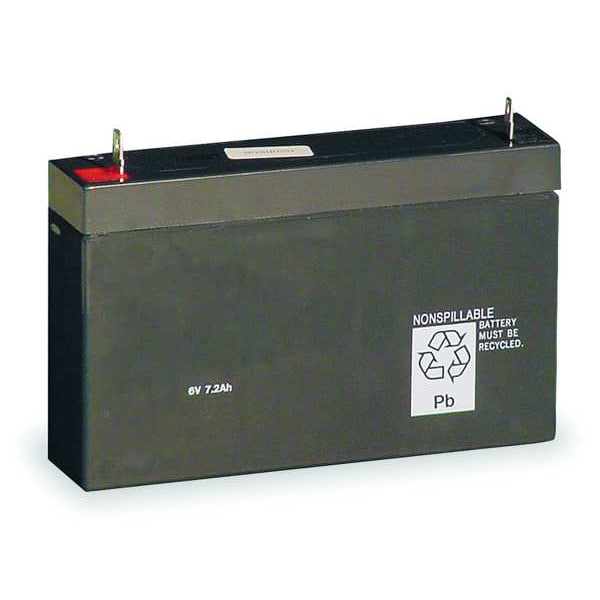 Battery, Battery Chemistry Sealed Lead Acid, Battery Capacity 6.5 Ah, Compatible with Series ELM2, ELR2, ELT16, IND1236, IND618, Recharge Time 72 hr, 168 hr, Voltage 6 V, Slip On Terminal Type, 250 and 187 Flag Terminal Connection, Rated Life 1 yr, Black Housing Color, Compatible Grainger Part Number 4PG69; 4PG74; 4PG94; 4PH01; 5TP29; 5TP30, Compatible Mfr. Model Number ELU2X; ELR2; ELT16; 6ELM2; HQM S W 3 R 120/277; HQM S W 3 G 120/277; IND618; IND1236, Overall Depth 4 in, Overall Height 6 in