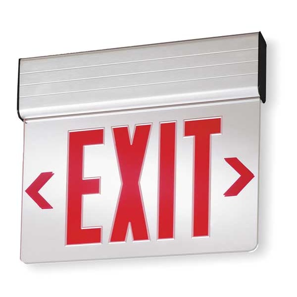 Edge-lit Exit Sign, Letter Color Red, Number of Faces 2, Directional Indicators - Emergency Lighting and Exit Signs Universal Field Selectable Chevrons, Lighting Technology LED, Housing Material - Emergency Lighting and Exit Signs Aluminum, Housing Color - Emergency Lighting and Exit Signs Gray, Emergency Back Up Battery No, Battery Chemistry Not Battery Powered, Voltage - Emergency Lighting and Exit Signs 120/277, Number of Lamp Heads 0
