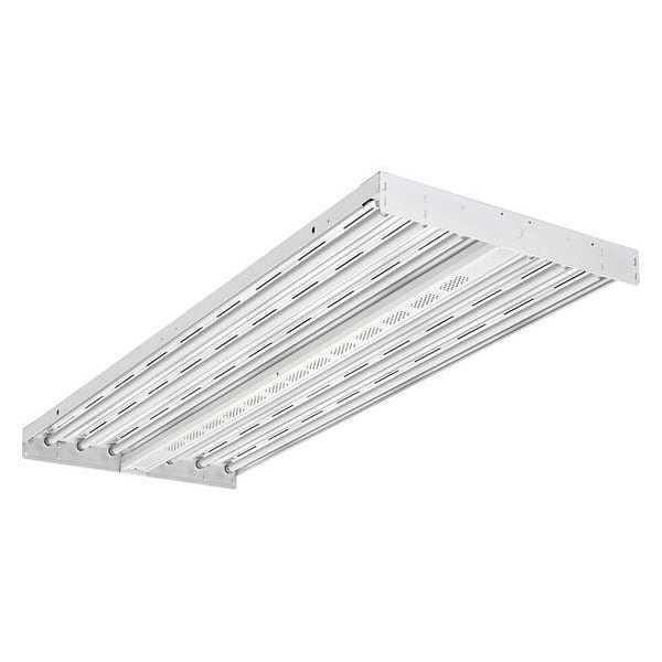 Fluorescent High Bay Fixture, Lamp Quantity 6, Lamp Type T5, Suggested Lamp Item No. 5AE35, Fixture Wattage 324W, Voltage 120 to 277VAC, Description/Special Features Heat Slots, Length 48-1/16 In., Width 18-1/8 In., Height 2-3/8 In., Light Distribution Narrow, Reflector Type Miro4(TM), Reflector Material Aluminum, Mounting Height 15 to 40 ft., Space to Mtg. Height Ratio 1, Lamp Watts 54W, Ballast Type Electronic Programmed Start, Ballast Quantity 1
