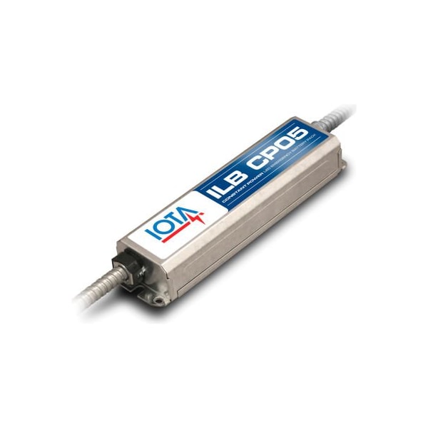The iota ilb cp05 is a ul listed led emergency driver that allows the same led fixture to be used for both normal and emergency operation. In the event of a power failure, the ilb cp05 switches to the emergency mode and operates the existing fixture for 90 minutes. The unit contains a battery, charger, and converter circuit in a single can and is available in different mounting configurations for individual fixture requirements. The constant power design of the ilb cp05 maintains the output wattage to the led array even as the system voltage diminishes.
