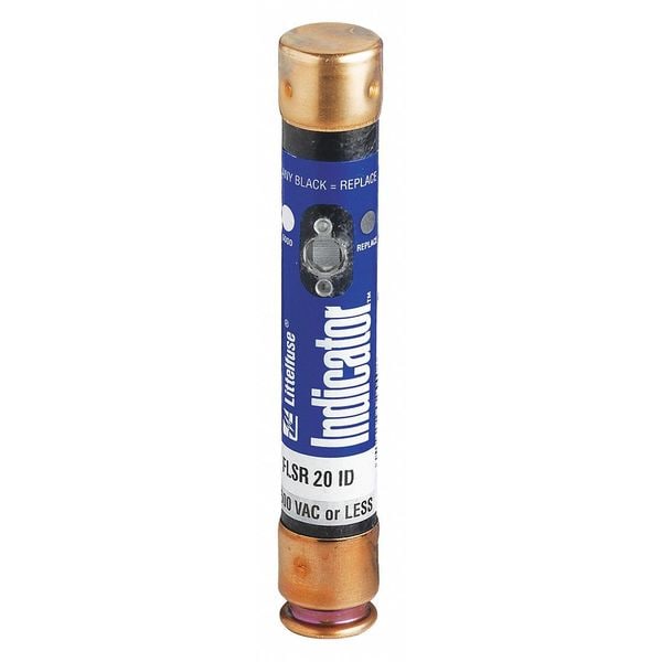 Fuse, 20 A, 600 V AC, 300 V DC, Class RK5, FLSR Series, Non-Indicating, Time-Delay, Body Style Cylindrical, Fits Fuse Block Style Rejection, Interrupt Rating 200kA at 600V AC, 20kA at 300V DC, Fuse Size 5 in L x 13/16 in dia, Length 5 in, Diameter 13/16 in, Equivalent Brand and Series Bussmann FRS-R, Edison ECSR, Littelfuse FLSR, Mersen TRS-R, Equivalent Series ECSR, FLSR, FRS-R, TRS-R, Compatible Fuse Block Series LFR, Body Material Fiberglass, Dual Element