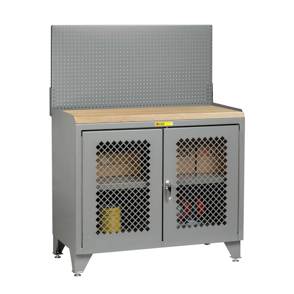 Bench Cabinet, 24" X 48", Perforated Doors, Butcher Block, Pegboard