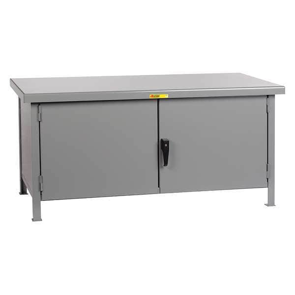 Cabinet Workbench, Top Material Steel, Color Gray, Non-Metal Top Thickness Not Applicable, Number of Doors 2, Number of Drawers 0, Number of Shelves 0, Overall Depth 36 in, Overall Height 34 in, Overall Load Capacity 3,600 lb, Overall Width 72 in, Top Metal Material Gauge 7 ga, Included Components No Additional Components, Assembly Fully Assembled, Brake Type None, Cabinet Interior Depth 30 in, Caster Mount Type Not Applicable, Caster Type Not Applicable, Door Type Standard/Hinged