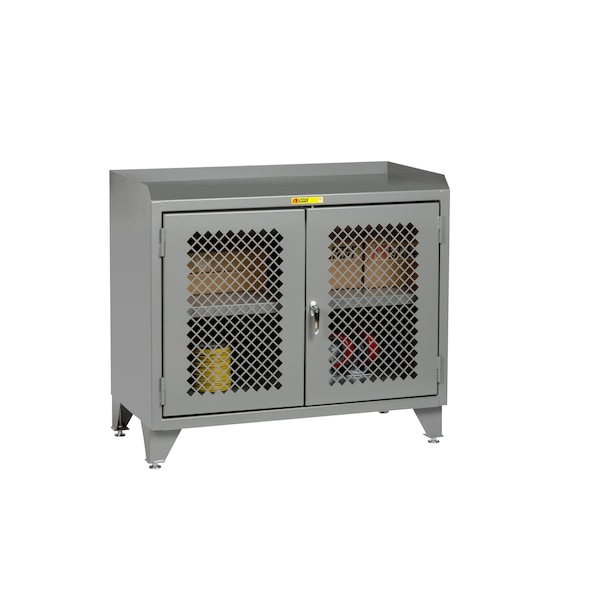 Counter Height Bench Cabinet, 36"W, Perforated Doors, Steel Top