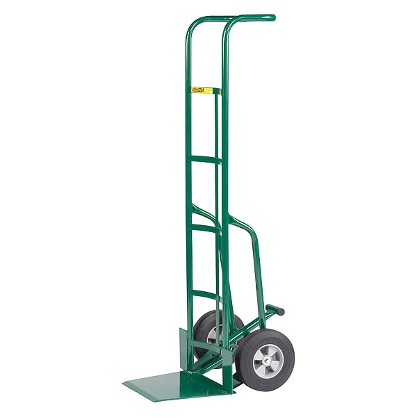 Hand Truck, Load Capacity 800 lb, Overall Height 60 in, Nose Plate Depth 13 1/2 in, Nose Plate Width 16 in, Without Wheel Fenders, Frame Finish Unfinished, Handle Type Flow Back, Axle-Mounted Wheel Dia. 10 in, Axle-Mounted Wheel Type Solid, Includes Foot Assist With Foot Assist