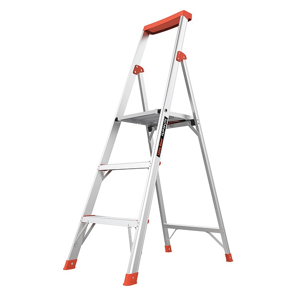 Platform Stepladder, Material Aluminum, ANSI Type IA, Ladder Height 5 ft, Load Capacity 300 lb, Number of Steps 3, Base Spread 33 in, Bottom Width 20 in, Step Depth 3 in, Step Tread Ribbed, Series Flip-N-Lite, Includes Built in Comfort Step, Standards ANSI, Rung/Step Spacing 12 in