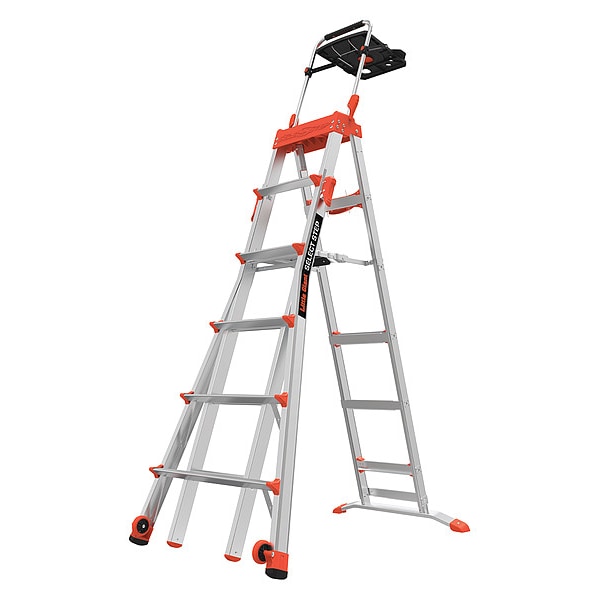 Adjustable Stepladder, Aluminum, 300 lb Load Capacity