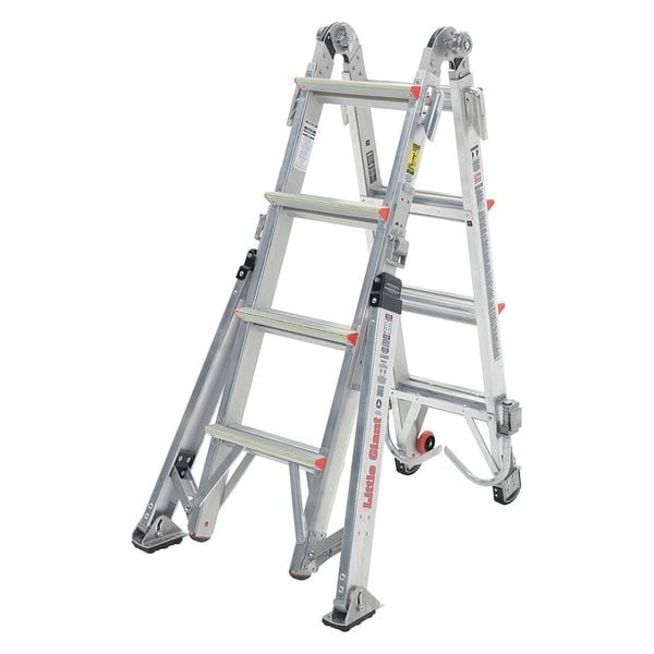Combination Ladder, Extended Ladder Height 15 ft, ANSI Type IAA, Material Aluminum, Load Capacity 375 lb, Stepladder Height 4 to 7 ft, Scaffold Height 3 ft, Closed Depth 55 in, Closed Height 4.6 ft, Bottom Width 23 in, Rail Type Aluminum, Series Overhaul, Standards ANSI, Ladder Configurations 90 Degrees Ladder, Extension Ladder, Platform Stepladder, Scaffold Ladder, Staircase Ladder, Stepladder, Net Weight 54 lb, Rung/Step Spacing 12 in