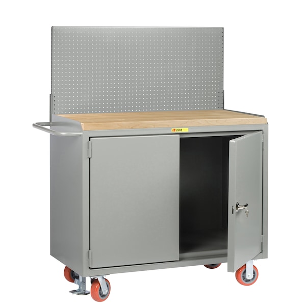 Mobile Bench Cabinets, 36"W, 1-3/4" Butcher Block, Pegboard