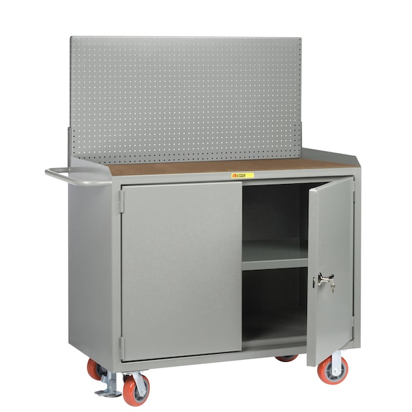 Mobile Bench Cabinets, 36"W, Center Shelf, 1/4" Hardboard, Pegboard